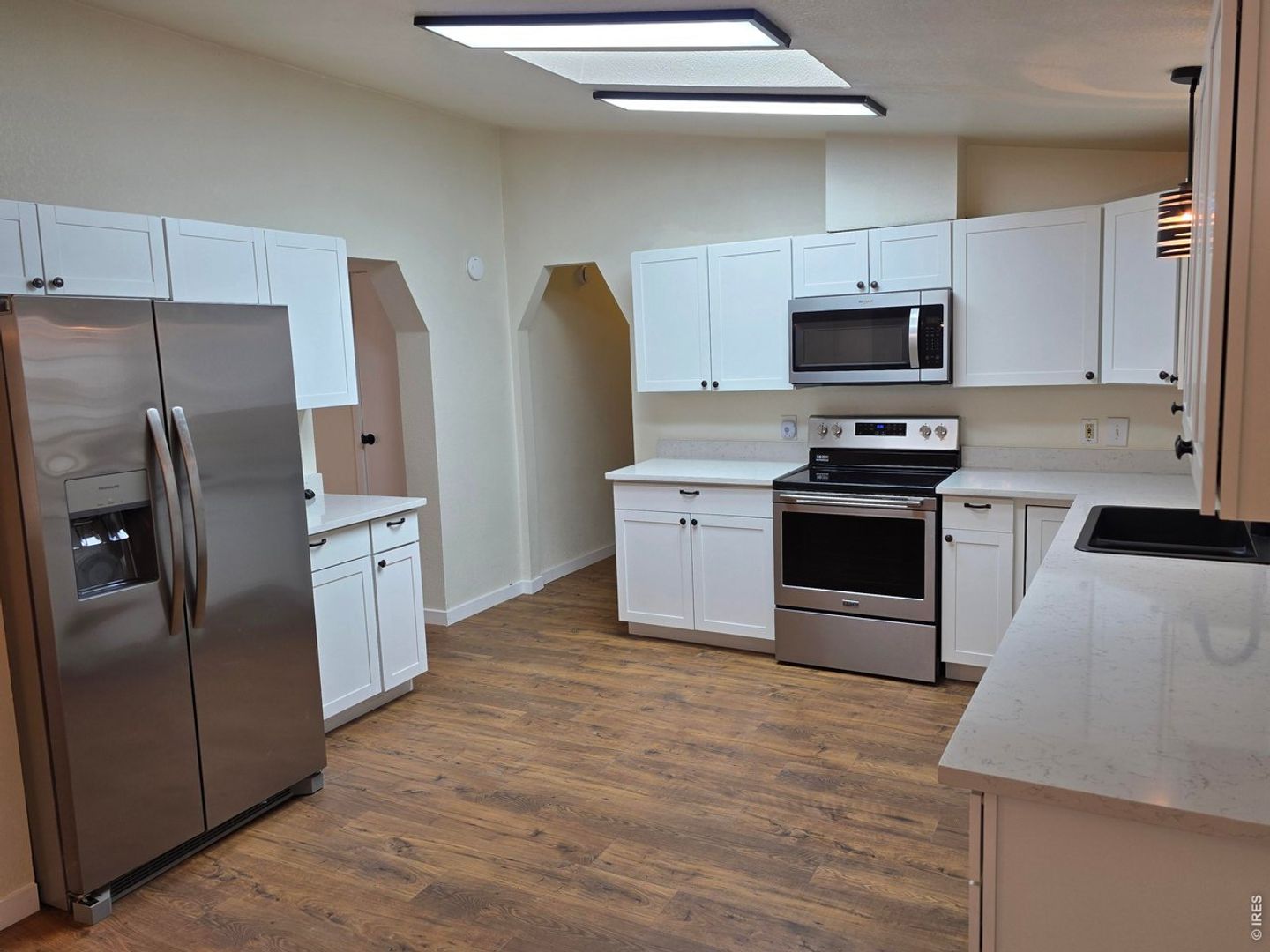 Beautifully Modern Home In Fort Morgan! This two-bedroom, two-bath residence combines contemporary finishes with thoughtful layout. An open floorplan and vaulted ceiling create an airy living space that flows to a deck for outdoor enjoyment. The kitchen features nearly new cabinets and quartz counters, while the primary suite includes a five-piece bathroom. Comfort is enhanced by central air conditioning and forced air heating. Located in Fort Morgan, this home offers modern style and practical amenities in a well-designed package.
